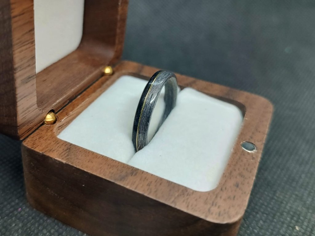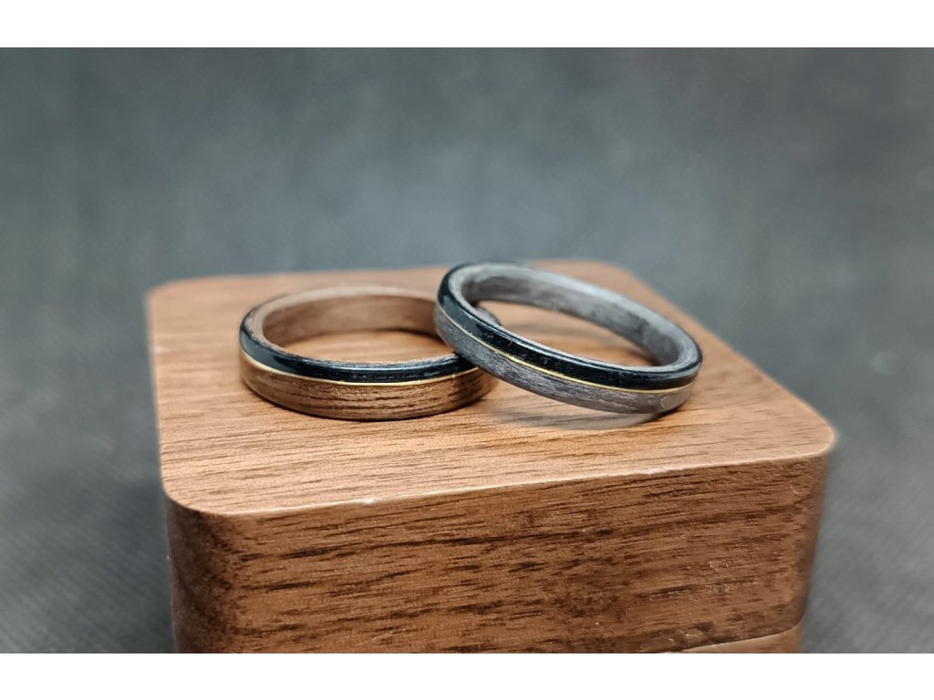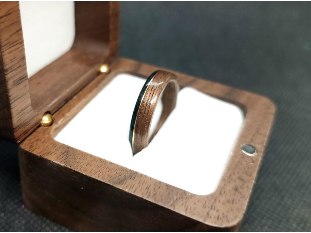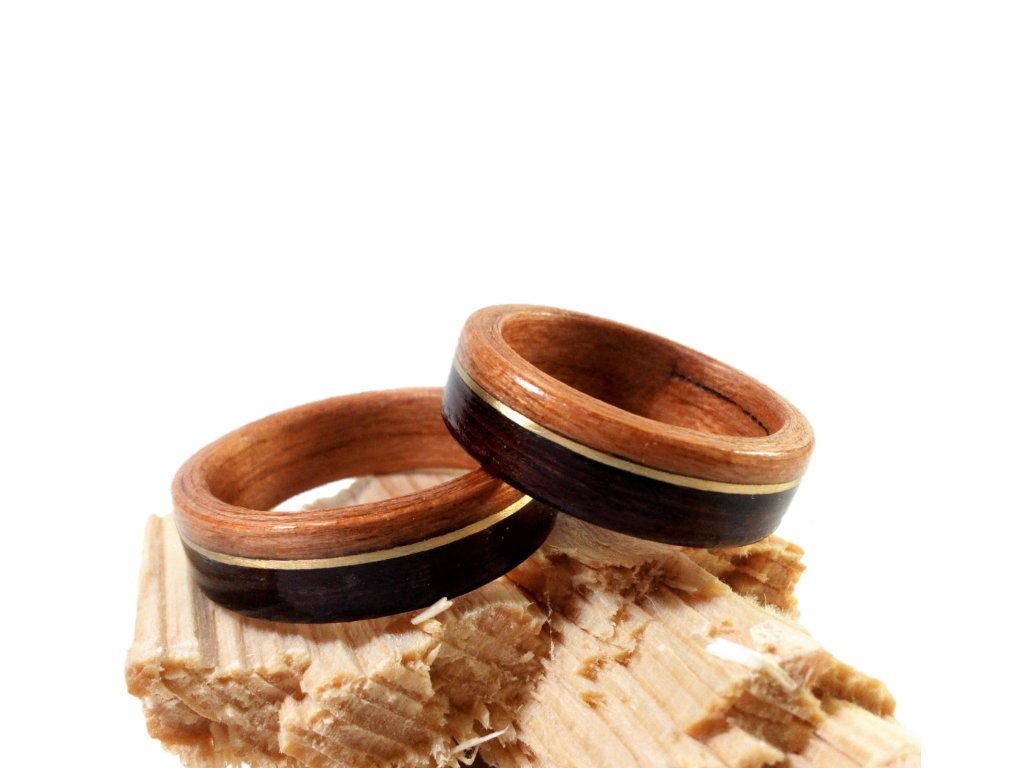 Dřevo voní a zlatý tón mosazi tomu dodává slavnostní klid. Prsten pro ty, kteří věří, že rozdíly mohou ladit.
